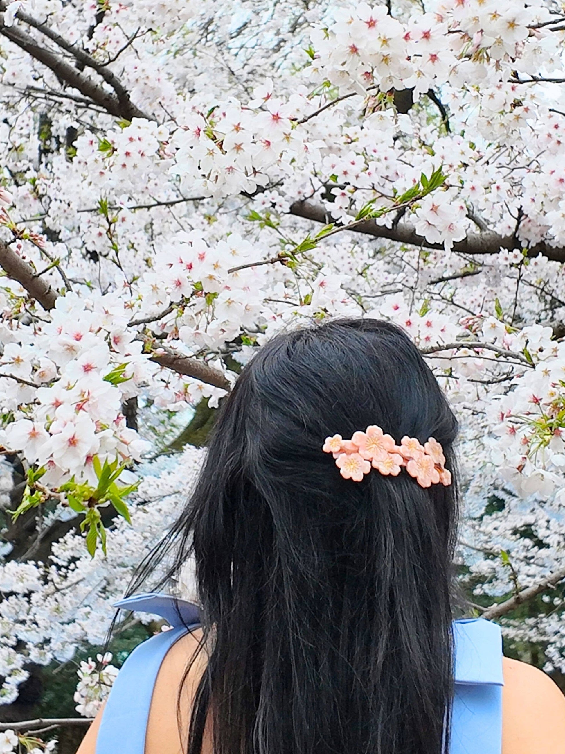 Hand-painted Cherry Blossom French Barrette Hair Clip | Eco-